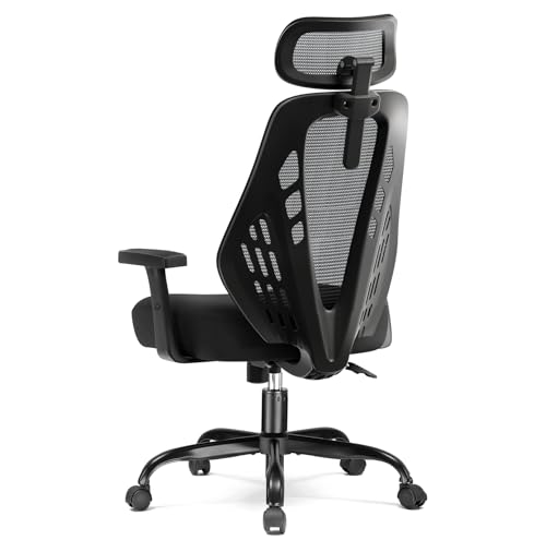 COMHOMA Chaise de Bureau Ergonomique avec accoudoirs 3D, appuie-tête, Chaise de Jeu en Maille Respirante, Dossier en Forme de V, Fonction basculante, siège en Mousse Haute densité, Noire