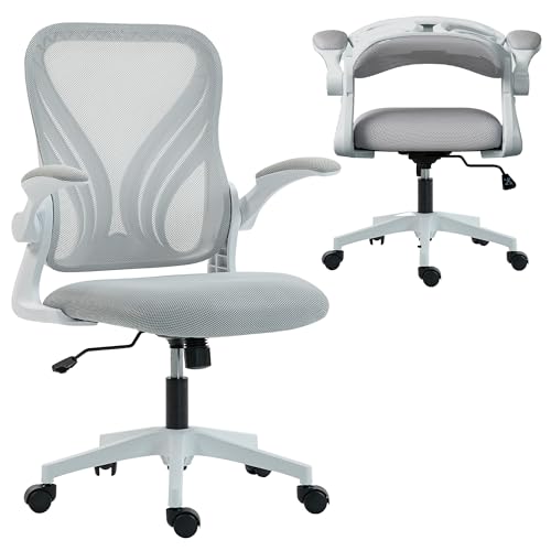 naspaluro Chaise de Bureau, Chaise de Bureau Ergonomique avec Accoudoirs Rabattables à 90°, Soutien Lombaire Unique, Revêtement en Maille Respirante, Siège Pivotant à 360° avec Fonction Swing, Grise