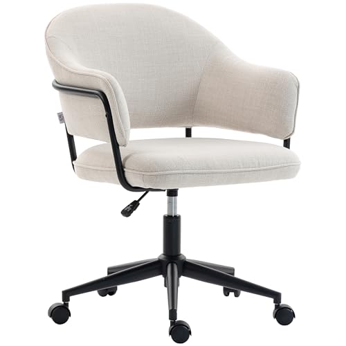 HOMCOM Chaise Bureau Ergonomique, Fauteuil de Bureau avec Hauteur réglable, pivotant 360°, Assise et Dossier rembourrés, Tissu Aspect Lin, pour Salon, Chambre, télétravail, crème