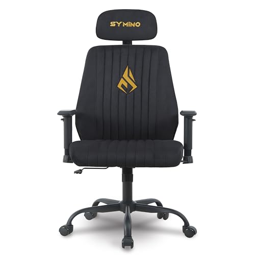 Symino Chaise de Bureau Ergonomique en Tissu Suédine, Fonction Inclinaison et Balancement 109°, Soutien Lombaire Intégré, Appui-Tête et Accoudoirs Réglables-Noir
