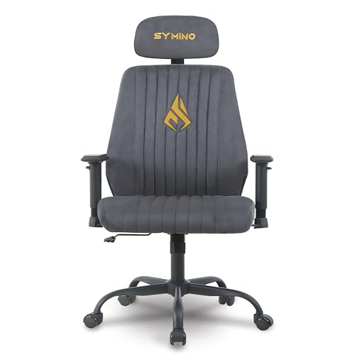 Symino Chaise de Bureau Ergonomique en Tissu Suédine, Fonction Inclinaison et Balancement 109°, Soutien Lombaire Intégré, Appui-Tête et Accoudoirs Réglables-Gris