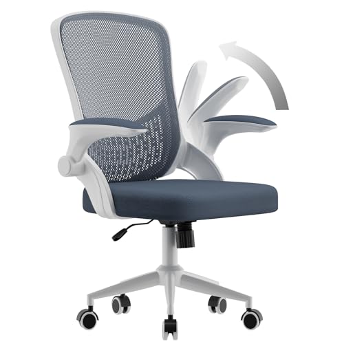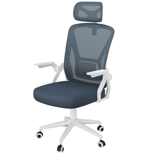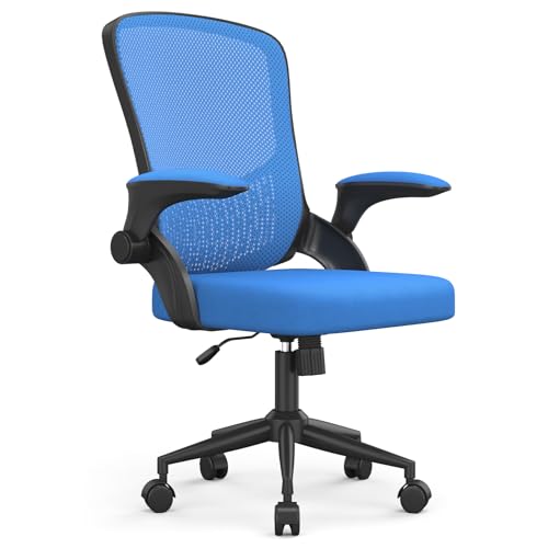 naspaluro Chaise de Bureau, Chaise de Bureau Ergonomique avec Accoudoirs Rabattables à 90°,Soutien Lombaire Unique,Revêtement en Maille Respirante, Siège Pivotant à 360° avec Fonction Swing,Bleu Noir