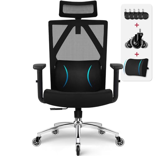 Durrafy Chaise Bureau, Fauteuil de Bureau Confortable, Chaise de Bureau Ergonomique Appuie-Tête et Accoudoir Réglables, Maille Respirante, Support Lombaire Réglable, Roulement 150KG