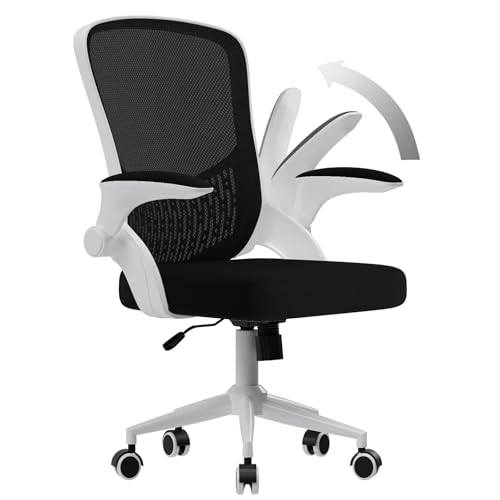 MELOKEA Chaise de Bureau Ergonomique, Fauteuil Bureau avec Appui-tête Réglable, Accoudoirs Rabattables, Support Lombaire Ergonomique, Maille Respirante, Siège en 1335, Noir et Blanc