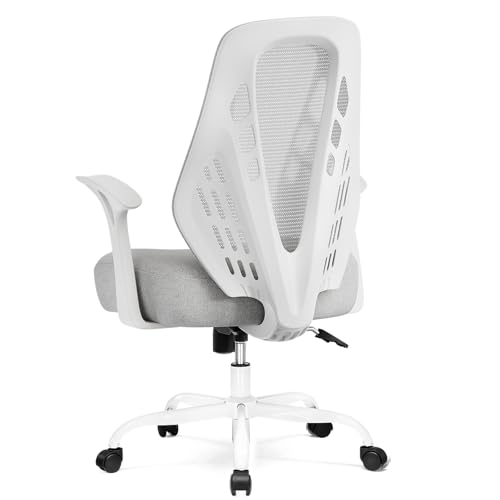 naspaluro Chaise de Bureau, Chaise de Bureau Ergonomique avec Accoudoirs Rabattables À 90°, Soutien Lombaire Unique, Maille Respirante, Siège Pivotant À 360° avec Fonction Swing, Blanc