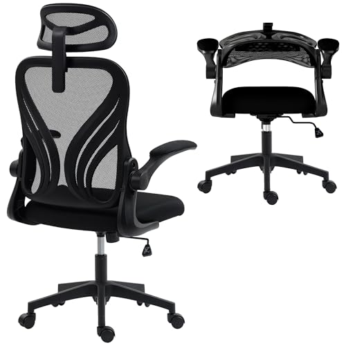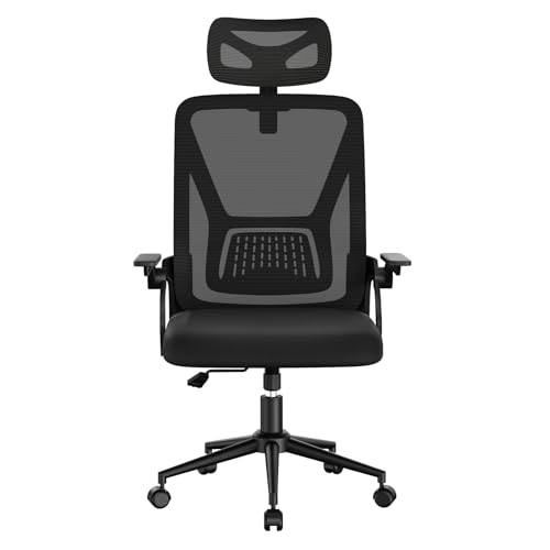 MELOKEA Chaise de Bureau Ergonomique, Fauteuil Bureau avec Appui-tête Réglable, Accoudoirs Rabattables, Support Lombaire Ergonomique, Maille Respirante, Siège Conforme à en 1335, Noir