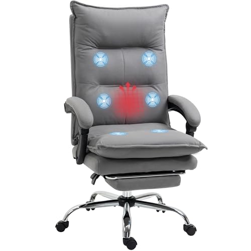 Vinsetto Fauteuil de Bureau massant et Chauffant, Chaise de Bureau, Chaise Ergonomique avec Hauteur réglable, Dossier inclinable et télécommande Filaire, pivotant à 360°, Tissu en Microfibre, Gris