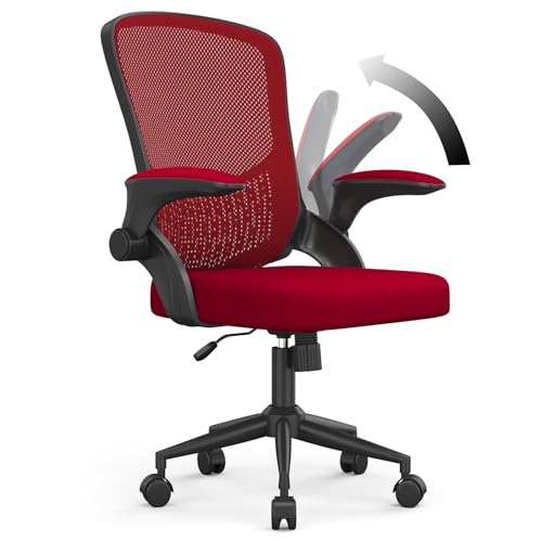 naspaluro chaise de bureau,chaise de bureau ergonomique Avec Accoudoirs Rabattables à 90°,Soutien Lombaire Unique,Revêtement En Maille Respirante,Siège Pivotant à 360° Avec Fonction Swing,Rouge Sombre