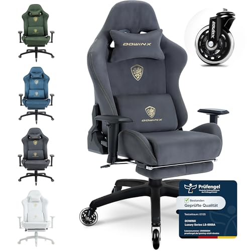 Dowinx Chaise gaming, Chaise de bureau ergonomique et respirante en microfibre velours, Sensation de siège douce comme du velours, Chaise de bureau réglable avec repose-pieds, Gris