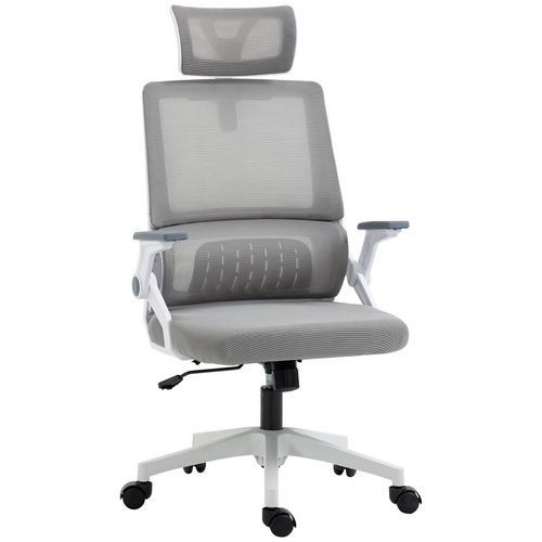 HOMCOM Chaise Bureau Ergonomique, Fauteuil de Bureau en Maille avec Dossier Rabattable, accoudoirs relevables, Soutien Lombaire, Fonction de Bascule et pivotant à 360°, Gris Clair