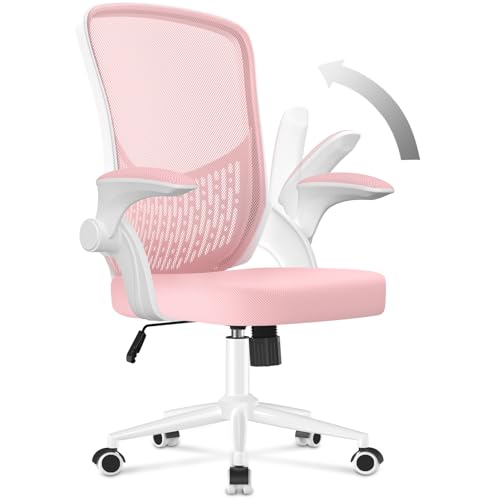 naspaluro Chaise de Bureau, Chaise de Bureau Ergonomique avec Accoudoirs Rabattables à 90°, Soutien Lombaire Unique, Revêtement en Maille Respirante, Siège Pivotant à 360° avec Fonction Swing,Rose