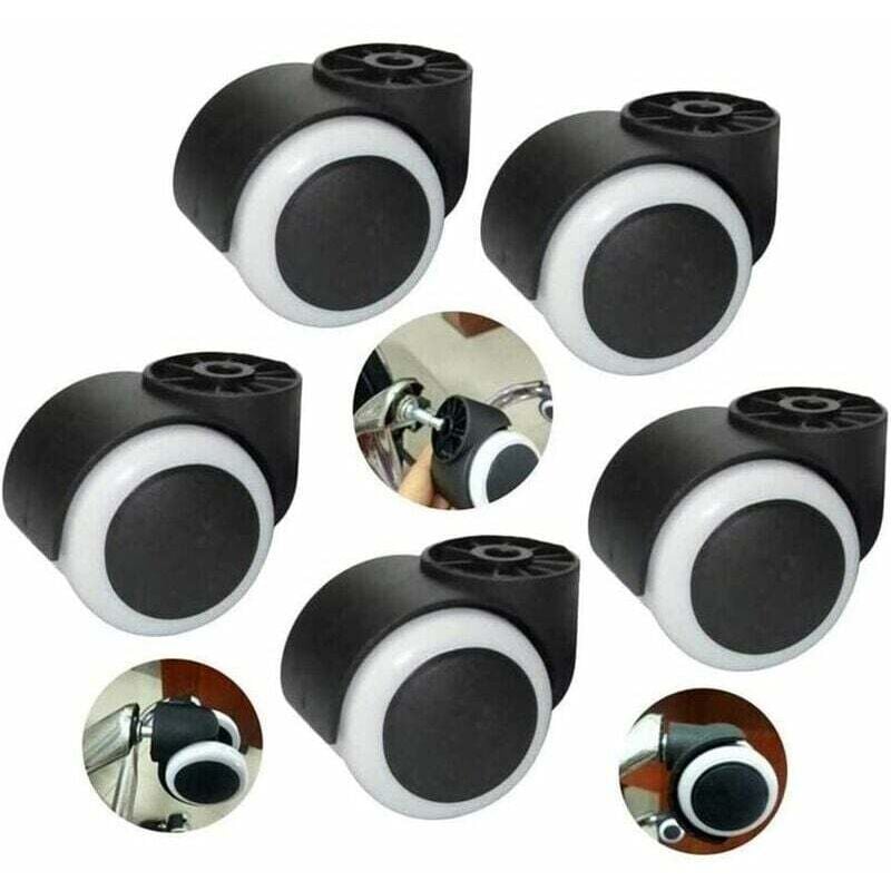 Jalleria - roulette pour chaise de bureau Lot 5 roulettes pour fauteuil Roue de rechange 11/50 mm Pied de siège silencieux pour sol dur Blanc