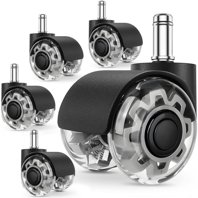 Ulisem Lot de 5 Roulettes Chaise de Bureau,11 x 22 mm Roulette Chaise Bureau,Rotation à 360 Degrés Sans Rayures,Pour sols durs,parquet, tapis,