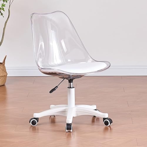 Chaise De Bureau Transparente, Chaise De Bureau en Acrylique sans Accoudoirs avec roulettes, Chaise De Vanité Pivotante à 360 ° Et Réglable en Hauteur, Chaise D, E, Seat Height 29.9" - 33.9"