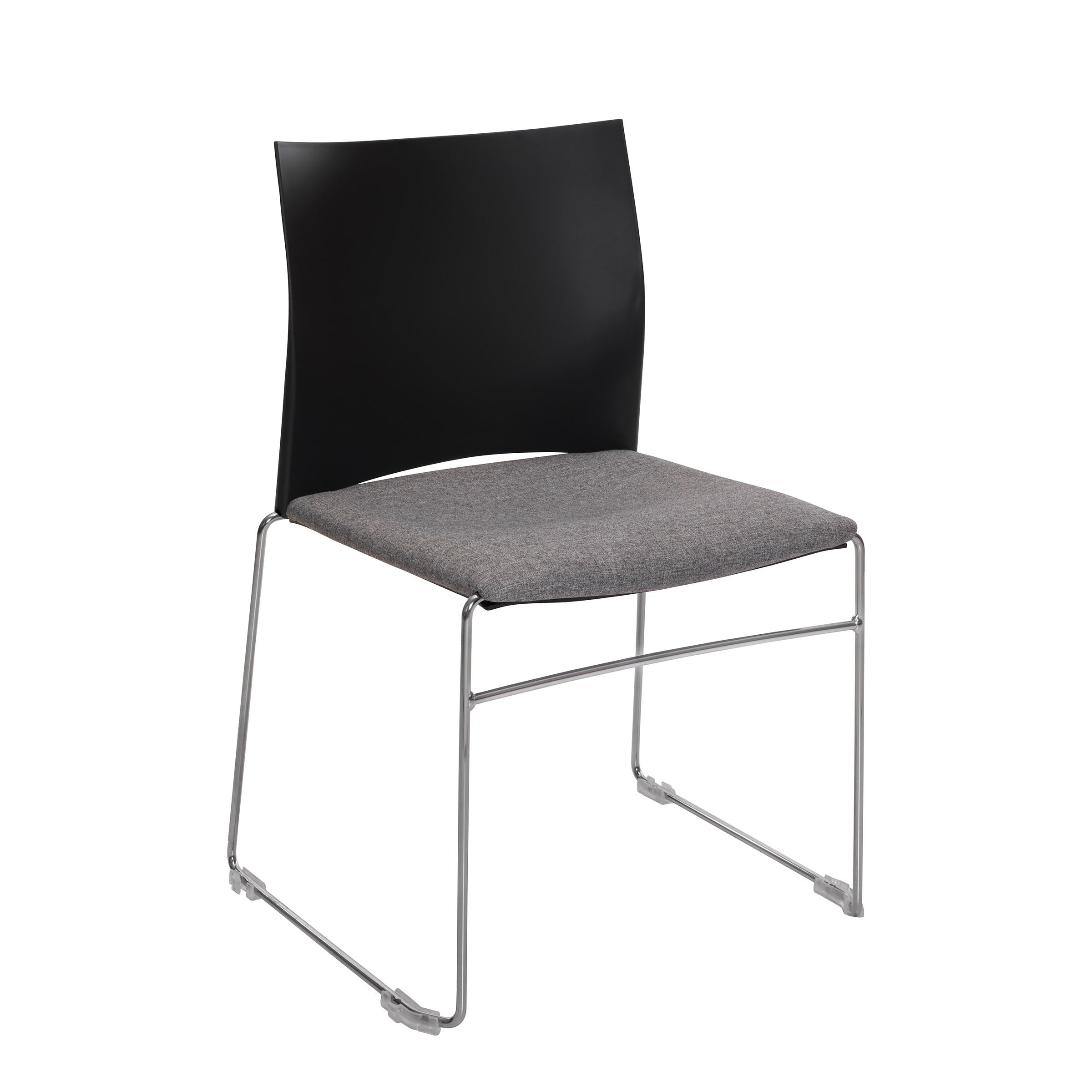Chaise de réunion et visiteur Giulia, dossier en polypropylène Noir, assise en tissu M1 Gris, piètement fil chromé métal