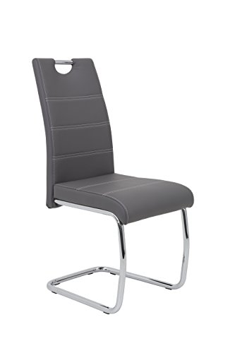 Hela Tische, Flora Lot de 1 Chaise Cantilever en Cuir Synthétique Gris, Piétement en Tube Rond Chromé, Dossier avec Poignée, Charge Maximale 120 kg