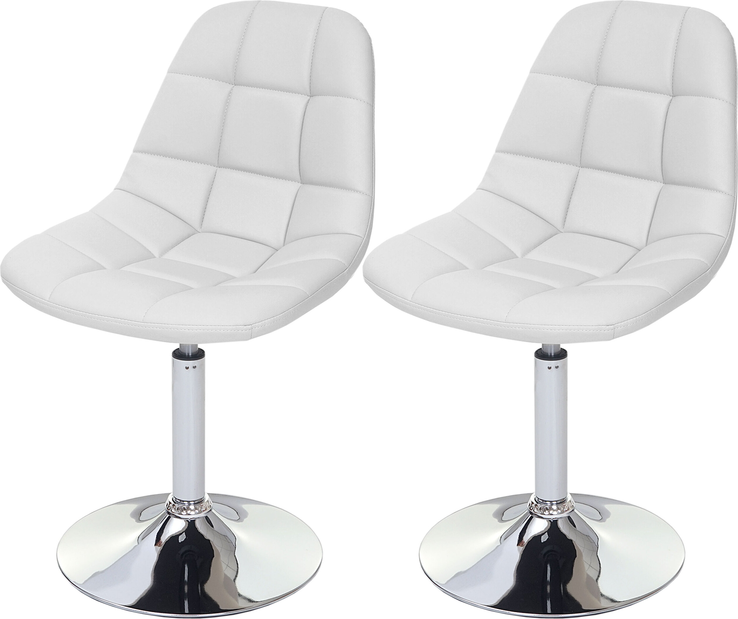 lot de 2 chaises de salle à manger HWC-A60, chaise pivotante, chrome ~ similicuir blanc