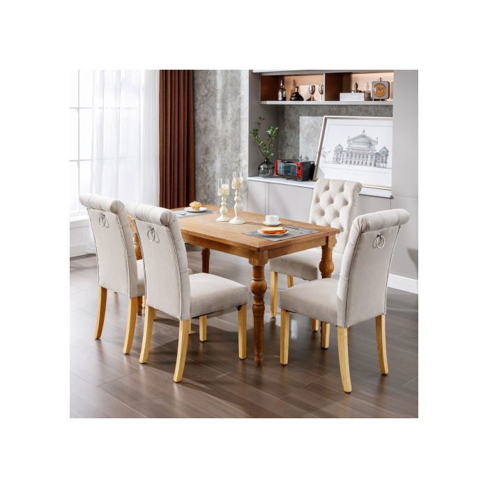 Chaises à manger en velours Ensemble de 4 avec jambes de chêne chaise à coucher chrome Clapper chaise cuisine chaise salon beige