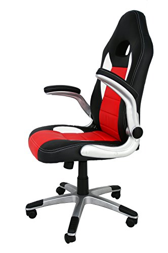 La Chaise Espagnole Sepulveda - Chaise de bureau ou études style Gaming, avec accoudoirs, dossier tapissé et base chromé, noir et rouge