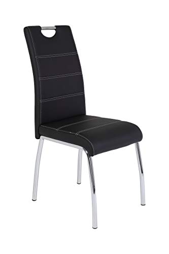 Hela Tische Susi Lot De 1 Chaise De Salle À Manger, Revêtement en Cuir Synthétique Noir, Cadre Chromé, Dossier avec Poignée, Charge Maximale 120 kg