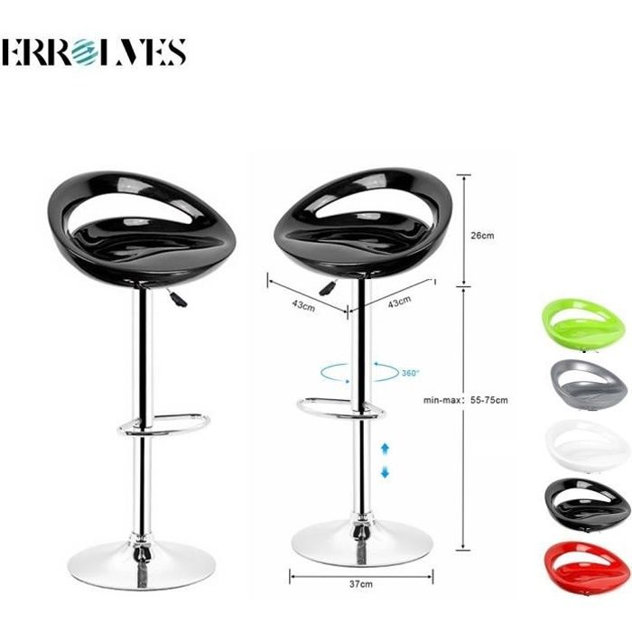 ERROLVES® 2pcs tabourets de bar télescopique - ABS Noir - Chaise Pieds métal chromé - L 43 x P 43 x H 101 cm