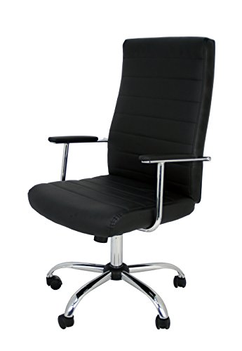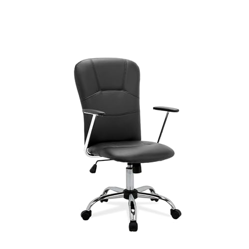 La Chaise Espagnole Patones - Chaise de bureau ou études de style Directeur avec accoudoirs, dossier tapissé et base chromé, noir