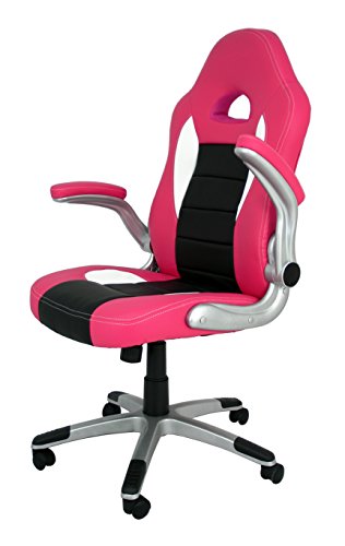 La Chaise Espagnole Sepulveda - Chaise de bureau ou études style Gaming, avec accoudoirs, dossier tapissé et base chromé, rose et noir
