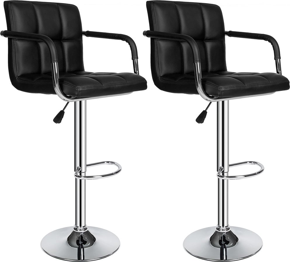 lot de 2 tabourets de bar Tabouret de bar avec dossier Chrome Chaise de bar pivotante en similicuir Avec accoudoirs Réglable en hauteur