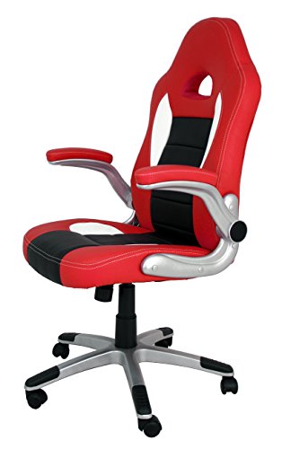 La Chaise Espagnole Sepulveda - Chaise de bureau ou études style Gaming, avec accoudoirs, dossier tapissé et base chromé, rouge et noir