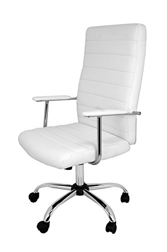 Chaise de bureau en similicuir design capitonné chaise d'ordinateur à roulettes moderne avec assise réglable en hauteur base en métal chromé chaise de travail blanc