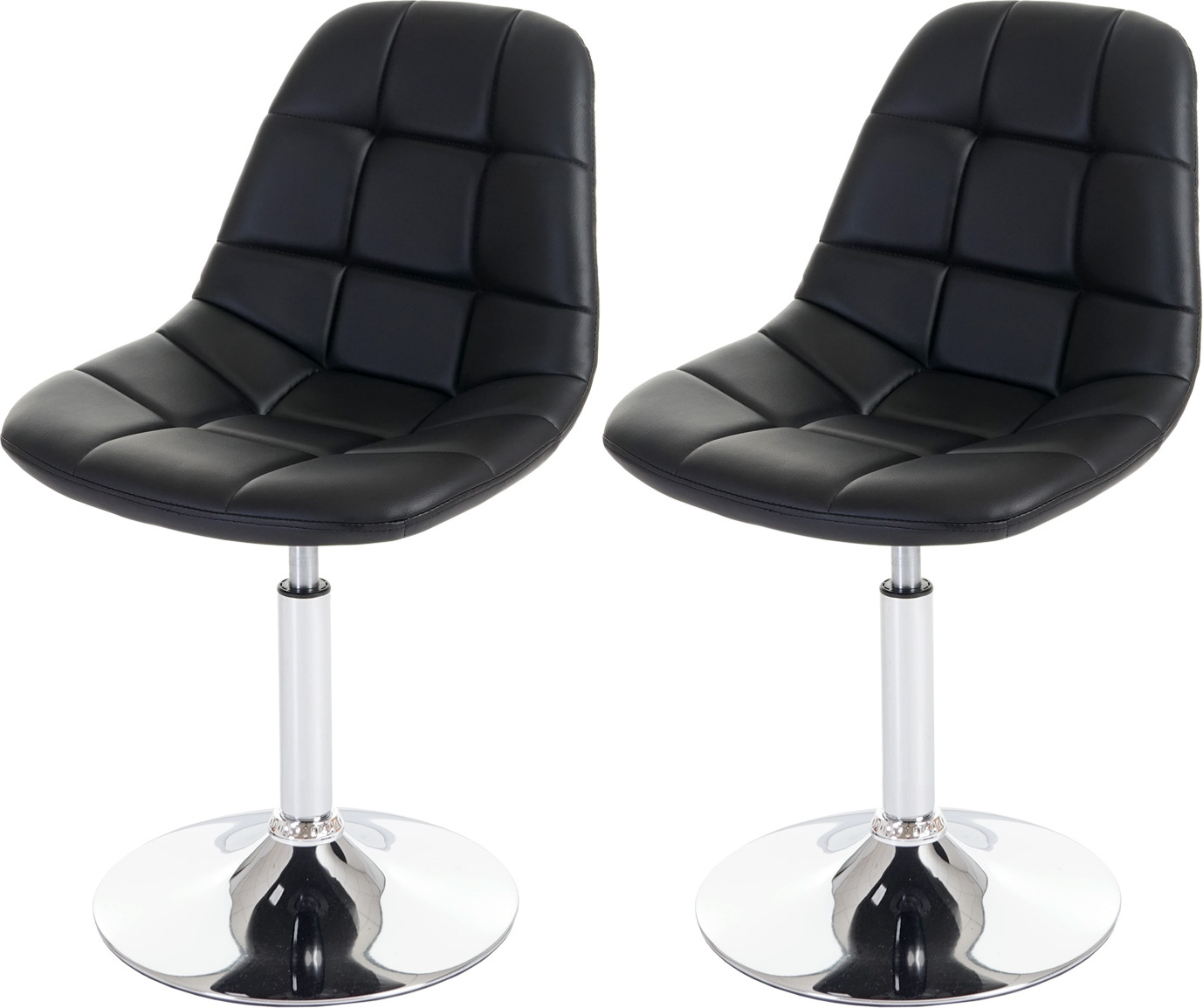 lot de 2 chaises de salle à manger HWC-A60, chaise pivotante, chrome ~ similicuir noir