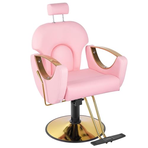 OSmari Chaise de barbier pour Salon de Coiffure,Chaise de Salon Professionnelle avec Pompe hydraulique Robuste,pivotant à 360 degrés pour Coiffeur Femme Homme,Rose
