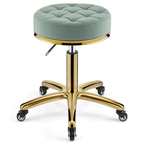 MEYEBP Tabouret Roulant Tabouret Pivotant, Tabouret De Coiffeur Réglable en Hauteur sur Roues, Tabouret Hydraulique Robuste en Métal avec Tige De Chaise Dorée pour Cuisine, Salon