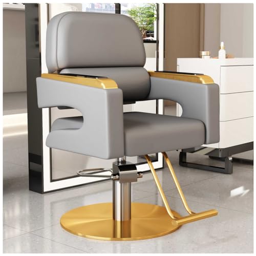 Chaise de salon de coiffeur réglable en hauteur rotative à 360 ° - Chaise de coiffeur hydraulique multifonction pour salon de coiffure - Confortable - Gris - Design durable
