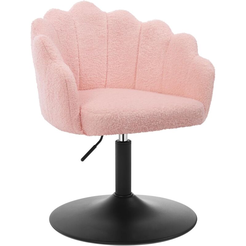 Chaise de Coiffeuse WOLTU, Fauteuil Pivotant en Tissu Bouclé, Réglable en Hauteur, Rose Clair