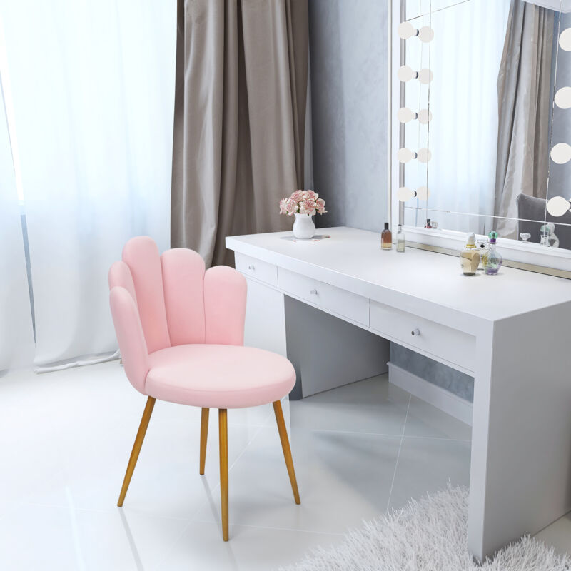 Chaise à dossier, chaise de coiffeuse, dossier en forme de pétale, 50×50×80 cm, rose.