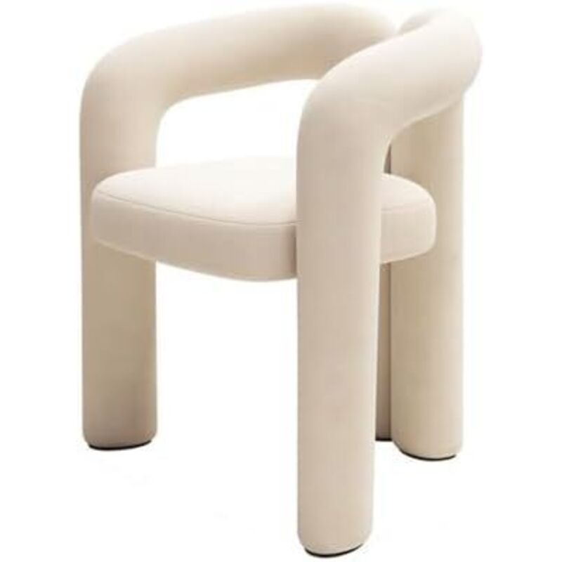Chaise de coiffeuse en velours - Chaise de salon rembourrée avec pieds et dossier en métal, beige, idéale pour la chambre ou le salon.