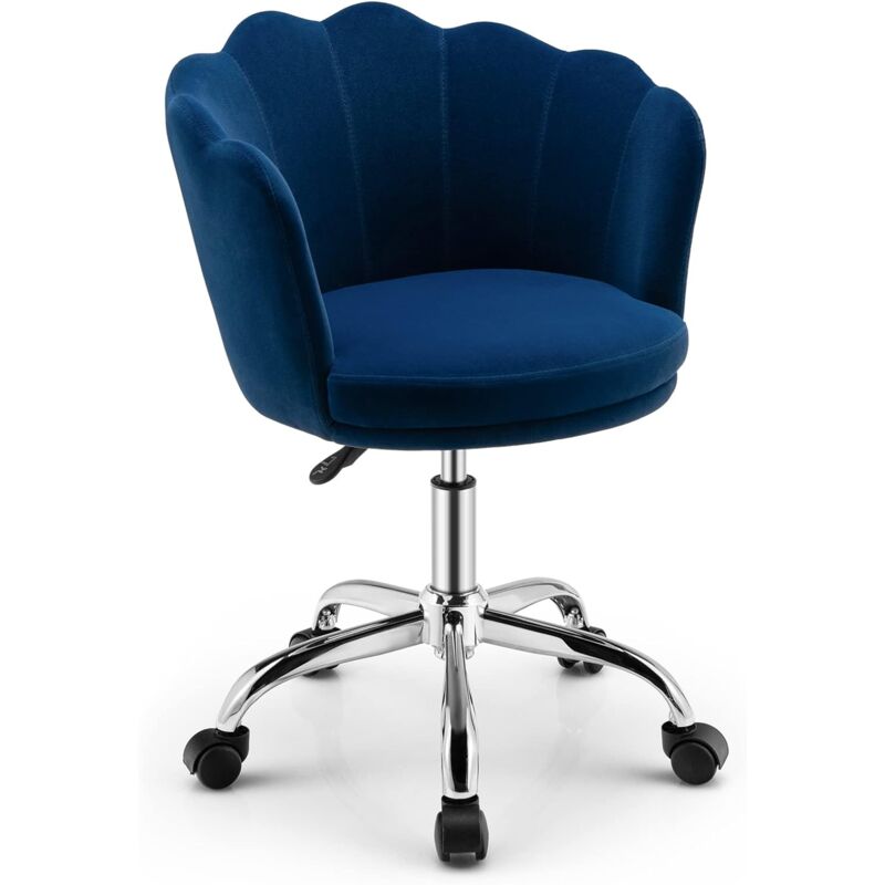 Costway - Fauteuil de Bureau en Velours avec 5 Roues Universelles, Chaise de Coiffeuse avec Hauteur Réglable, Chaise Salon Rembourrée Pivotante,