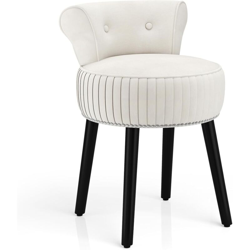 COSTWAY Chaise de Coiffeuse en Velours, Tabouret Coiffeuse avec Dossier, Pieds en Bois dHévéa, Patins Réglables, Tabouret de Maquillage, Dossier Bas