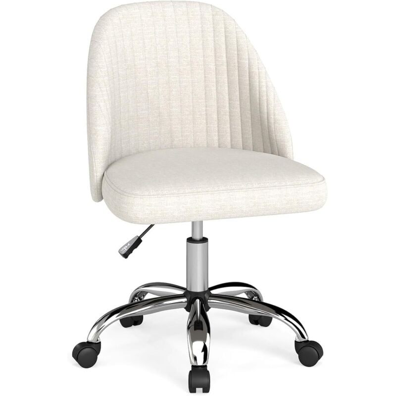 COSTWAY Chaise de Bureau, Chaise Moderne sans Accoudoirs avec Dossier Incurvé et Siège Rembourré, Chaise de Coiffeuse Pivotante Réglable en Hauteur