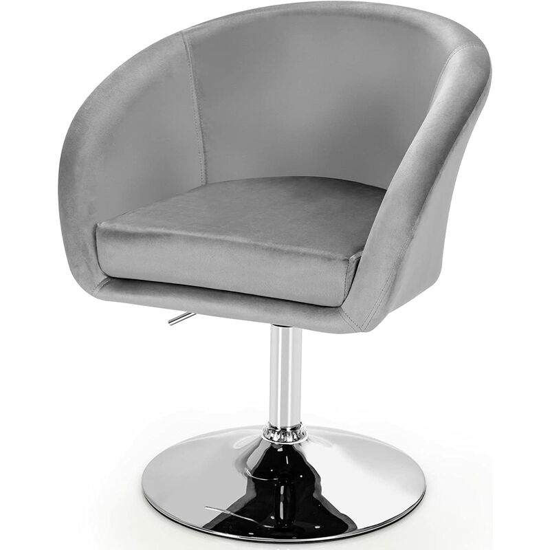 Chaise de Coiffeuse en Velours, Tabouret de Bar Réglable en Hauteur 13CM,Pivotant à 360°avec Dossier Rond&Base en Métal(Gris) - Goplus