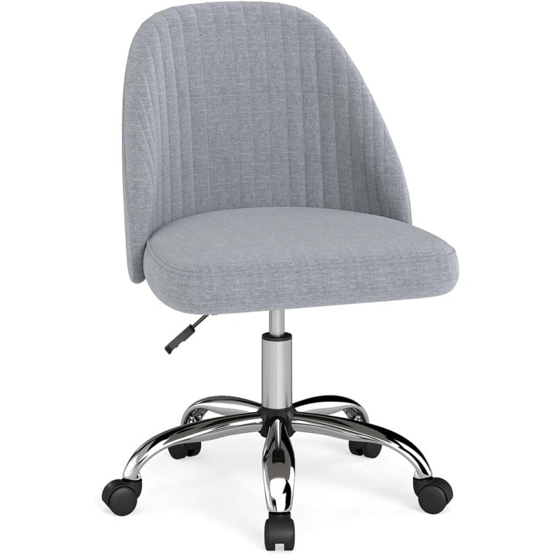 Chaise de Bureau sans Accoudoirs avec Dossier Incurvé et Siège Rembourré Chaise de Coiffeuse Pivotante Réglable en Hauteur Gris