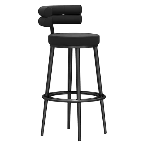 XJBTBA Tabouret de Bar tabourets de Bar Ensemble de 2 tabourets Chaise d'îlot avec Dossier Hauteur de comptoir Cadre en métal pédale Ronde Cuisine rembourrée (Noir)
