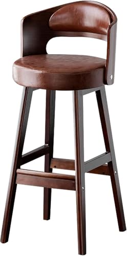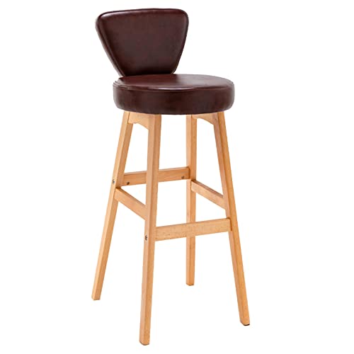 Chaise très Grande pour Bar PU Cuir, Pattes en Bois, Dos Creux, Livres, Tabouret comptoir pub d'îlot de Cuisine (Jambes brun-1-1ps, 65 cm)