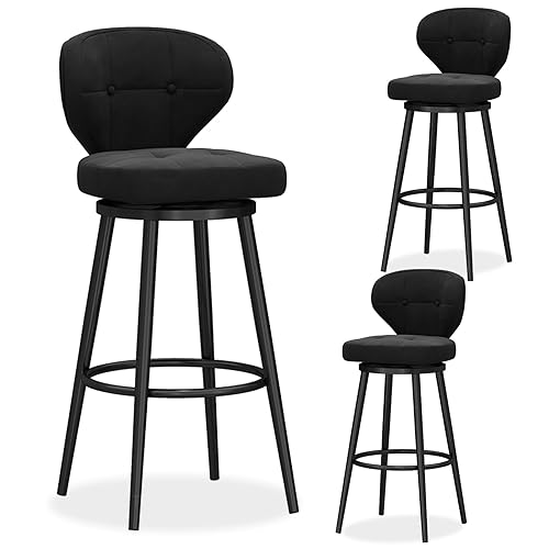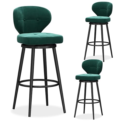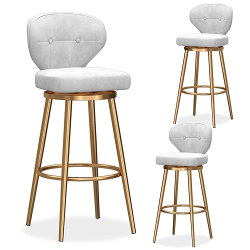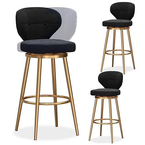 Tabourets de Bar pivotants Ensemble de 3, Tabouret de Bar de comptoir, tabourets de Bar en Velours avec Milieu arrière, Chaise de Bar rembourrée avec Base en métal, tabourets d'îlot de Cuisine