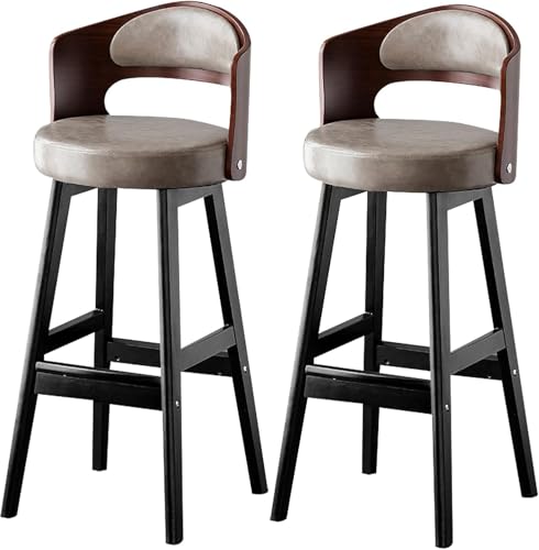Chaise Grande pour Bar PU Cuir, Pattes en Bois, Dos Creux, Livres, Tabouret comptoir pub d'îlot de Cuisine (Jambes gris-noir-2ps, 75 cm)