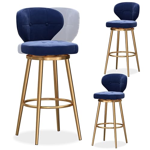 pivotants Ensemble Tabouret comptoir, Velours Milieu arrière, Chaise Bar rembourrée avec Base en métal, tabourets d'îlot de Cuisine (Bleu + Or, 37x40x75cm)