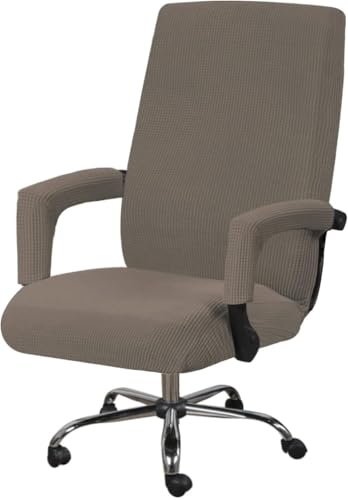 KAYBTNT Housse de Fauteuil de Bureau en Velours, Housse de Chaise de Bureau Extensible avec Housse Accoudoir, Universel Housse pour Fauteuil de Bureau Dossier Haut, Lavable,Taupe,XLarge