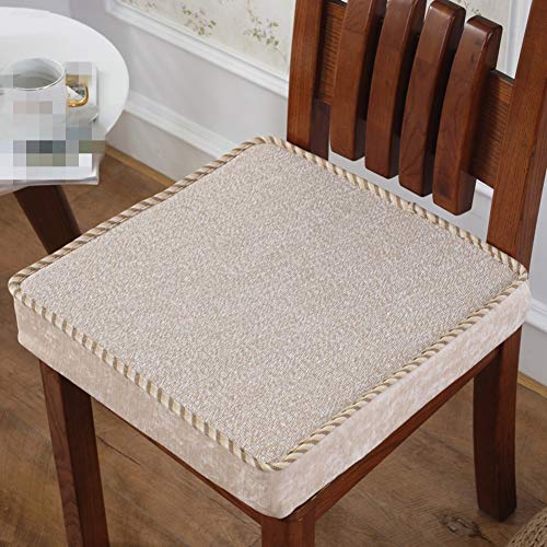 Coussin De Chaise en Lin en Mousse à Mémoire De Forme épaissir Coussin D’Assise Carré pour Chaises De Bureau Et De Salle à Manger Coussin De Salon De Couleur Unie Ch, E, 45x45X8cm