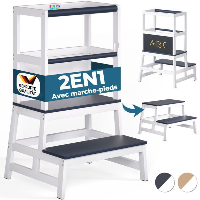 Spielwerk® Tour dObservation Montessori Blanche Enfant Dès 18 Mois Chaise Haute évolutive Sécurisée avec Tableau Noir